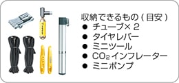 コンパクトながら チューブ・タイヤレバー・ミニツール・インフレーターやミニポンプなど 収納できる ツールケース です