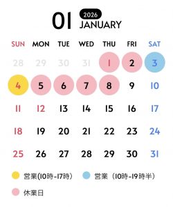 ※9日以降は通常営業に戻ります。営業時間:10時~19時半、定休日:毎週水・木曜日