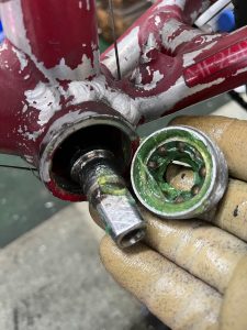 一度も分解したことが無いとの事でしたので BB(ボトムブラケット調整式)を 分解グリスアップ作業 をしました![]()