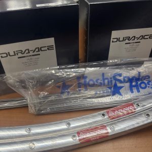 昨今 メーカーの完組ホイールはブラックホイールばかりですが オールドスタイルのクロモリフレームには シルバーカラーが似合いますよね![]()