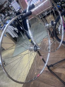 今回 手組したホイールは シルバーリムにシルバーハブ・スポークとクロモリバイクに似合ったスタイルに組みあがりました![]()